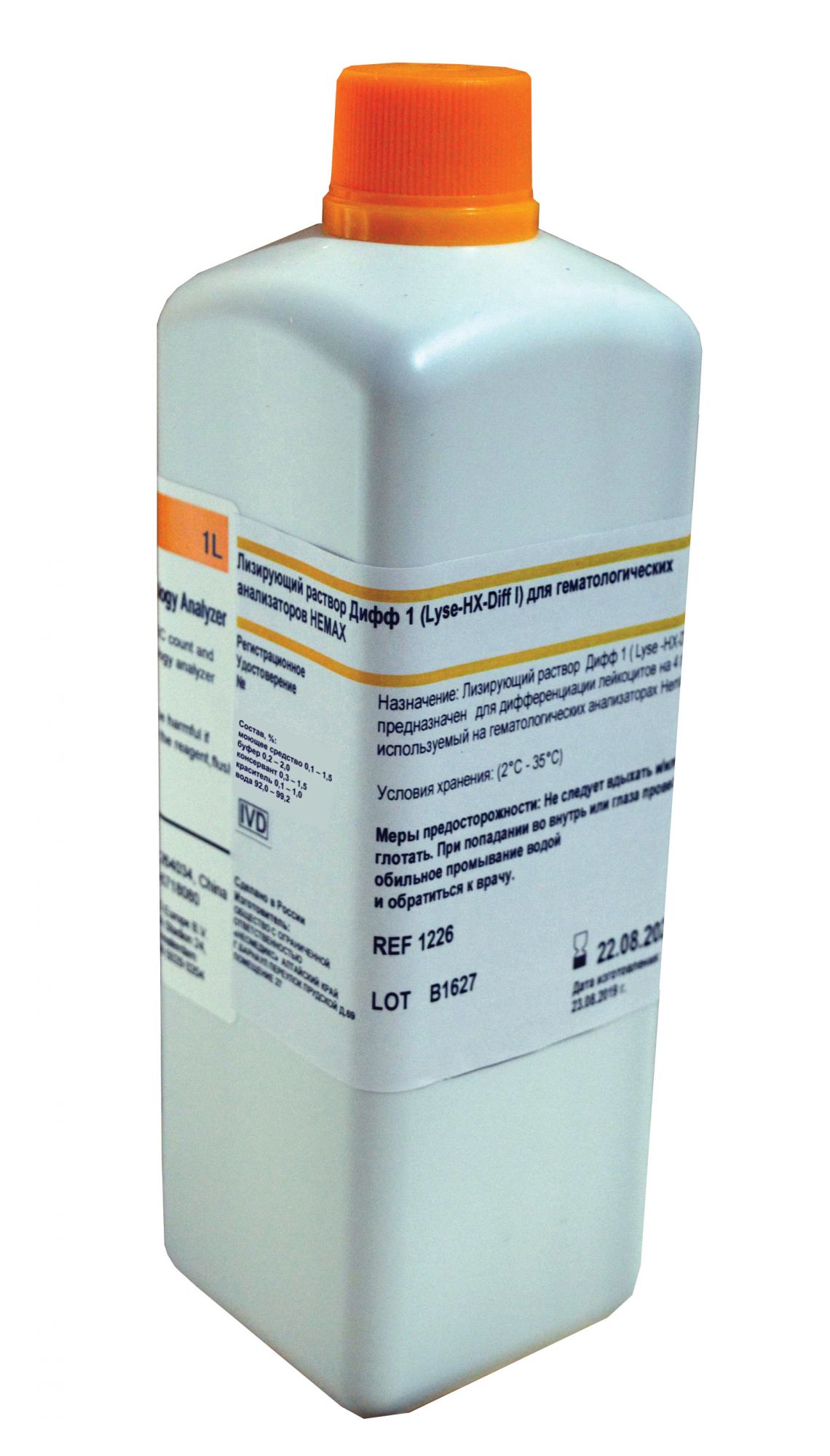 Лизирующий раствор Дифф 1 (Lyse HX-Diff I) расфасован во флаконы объемом 1,0 л.