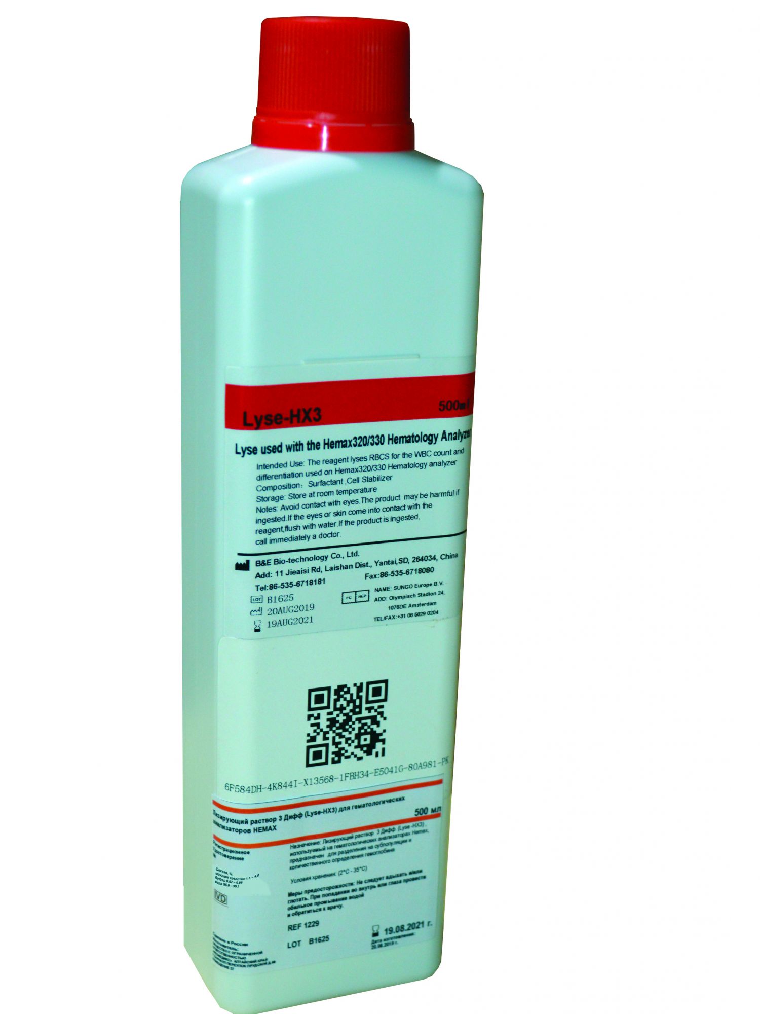 Лизирующий раствор Дифф 3 (Lyse-HX3)расфасован во флаконы объемом 0,5 л.
