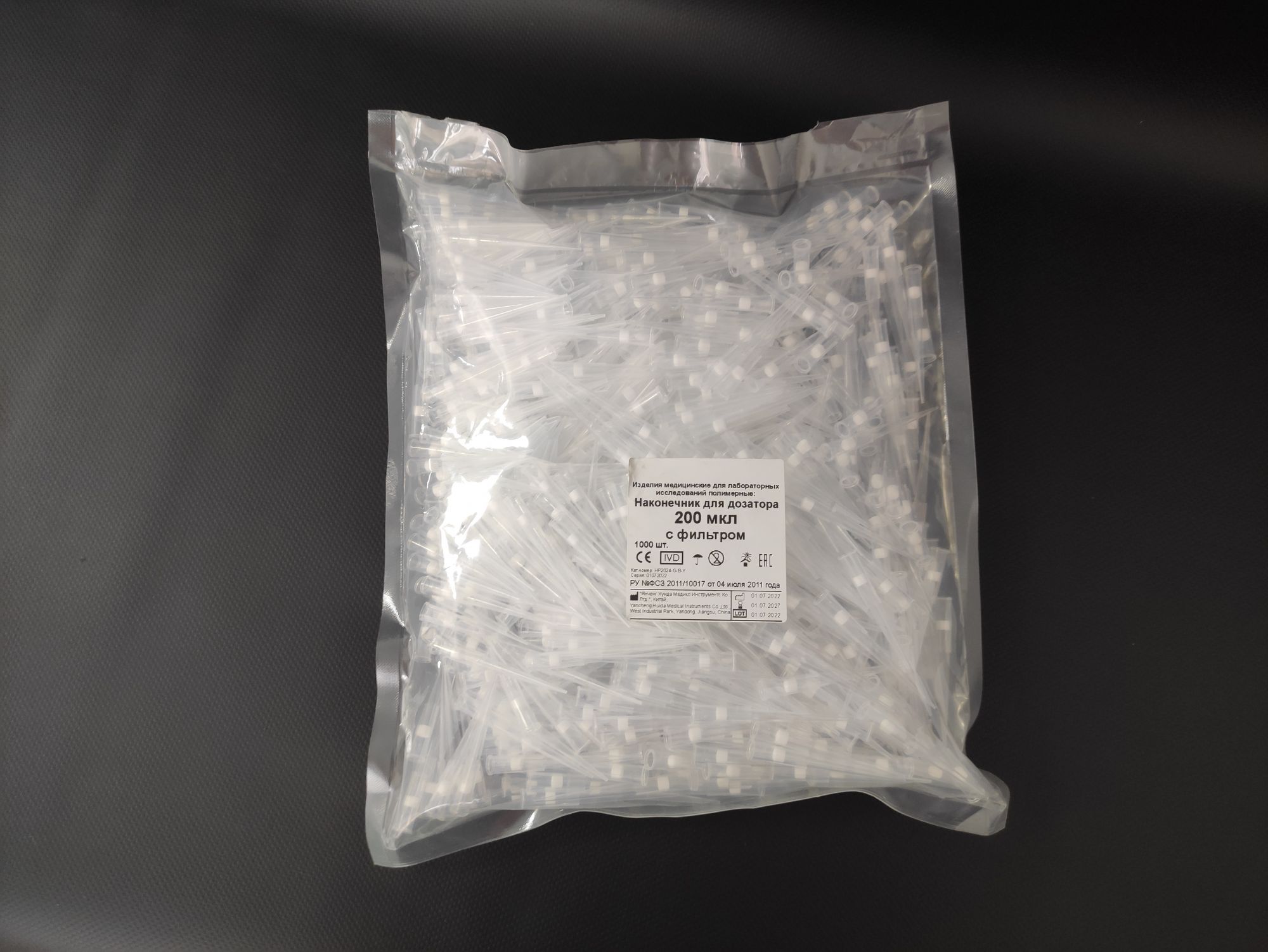 Наконечники 200 мкл с фильтром, желтый/прозрачный, без градуировки, универсальный, без ДНК и РНК, без пирогенов, 1000 шт/упак