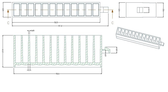 - Длина трека 57.4 мм, ширина 8.5 мм, длина трека без фиксатора 52.5 мм. Глубина трека 17.9 мм, толщина стенки от 0.65 до 1.0 мм.