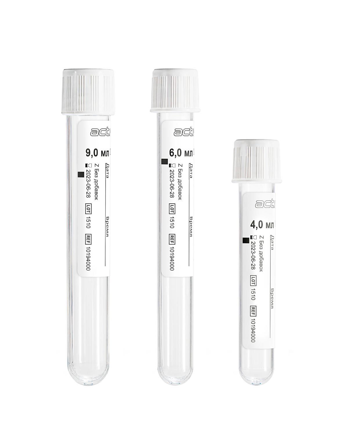 Вакуумные пробирки Acti-Fine® без наполнителя не содержат реагентов и разделяющих элементов. Применяются в качестве пробирки для сброса и аликвотирования.