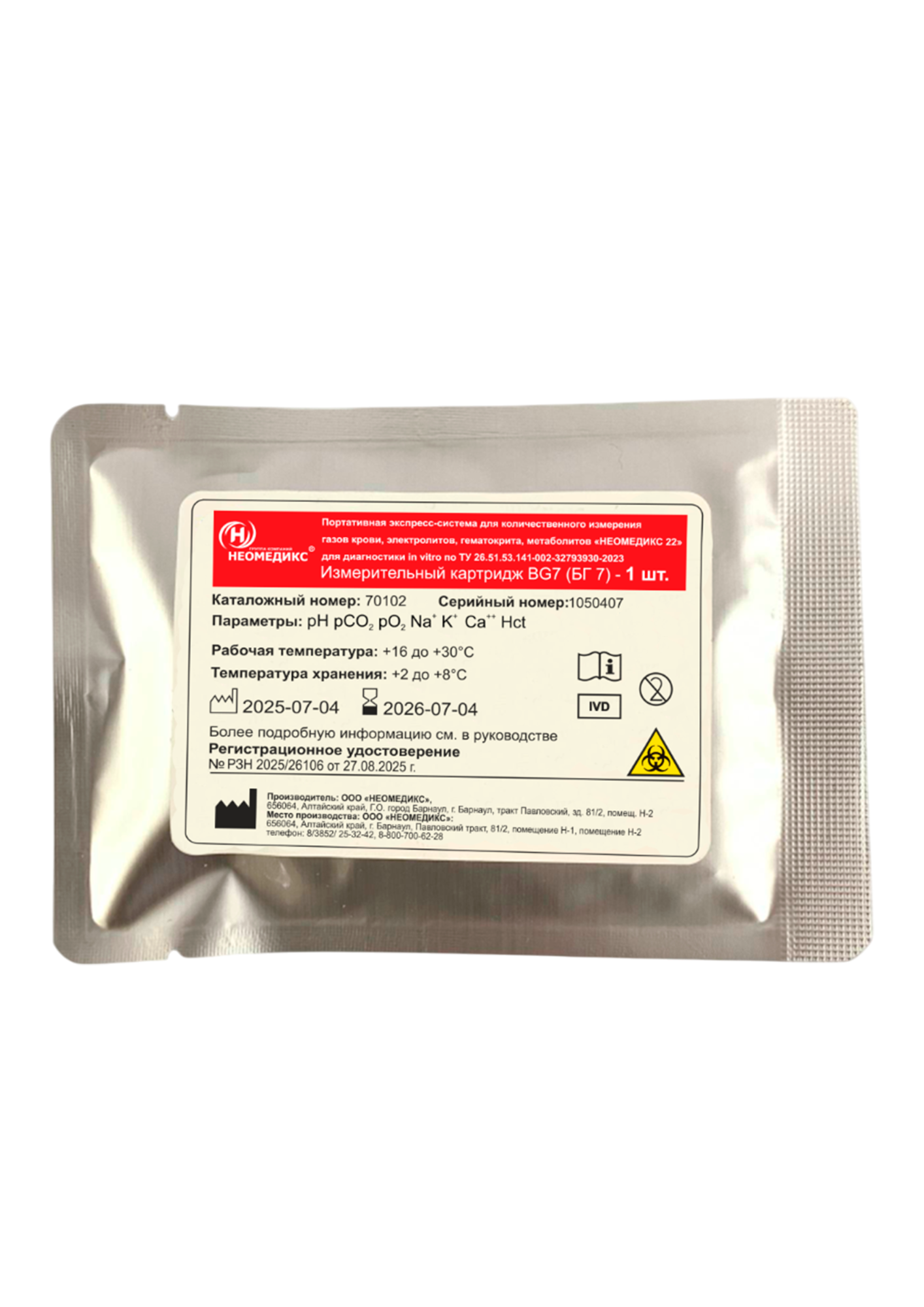 Картридж предназначен для проведения тестирования.